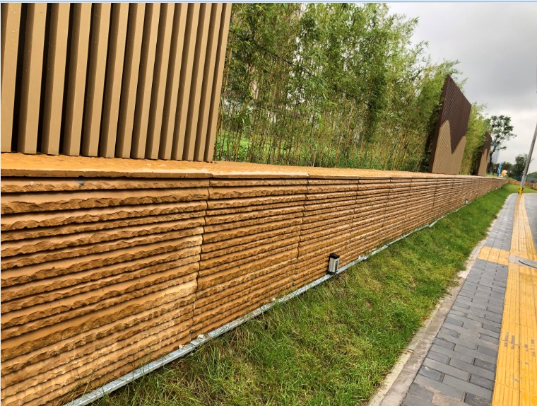 夯土板因為其具有自身不同的紋理,所以在施工的時候紋理要校對好,這樣做出來的紋理是通順,靈巧的,否則的話紋理凌亂、不自然,就會需要重做。